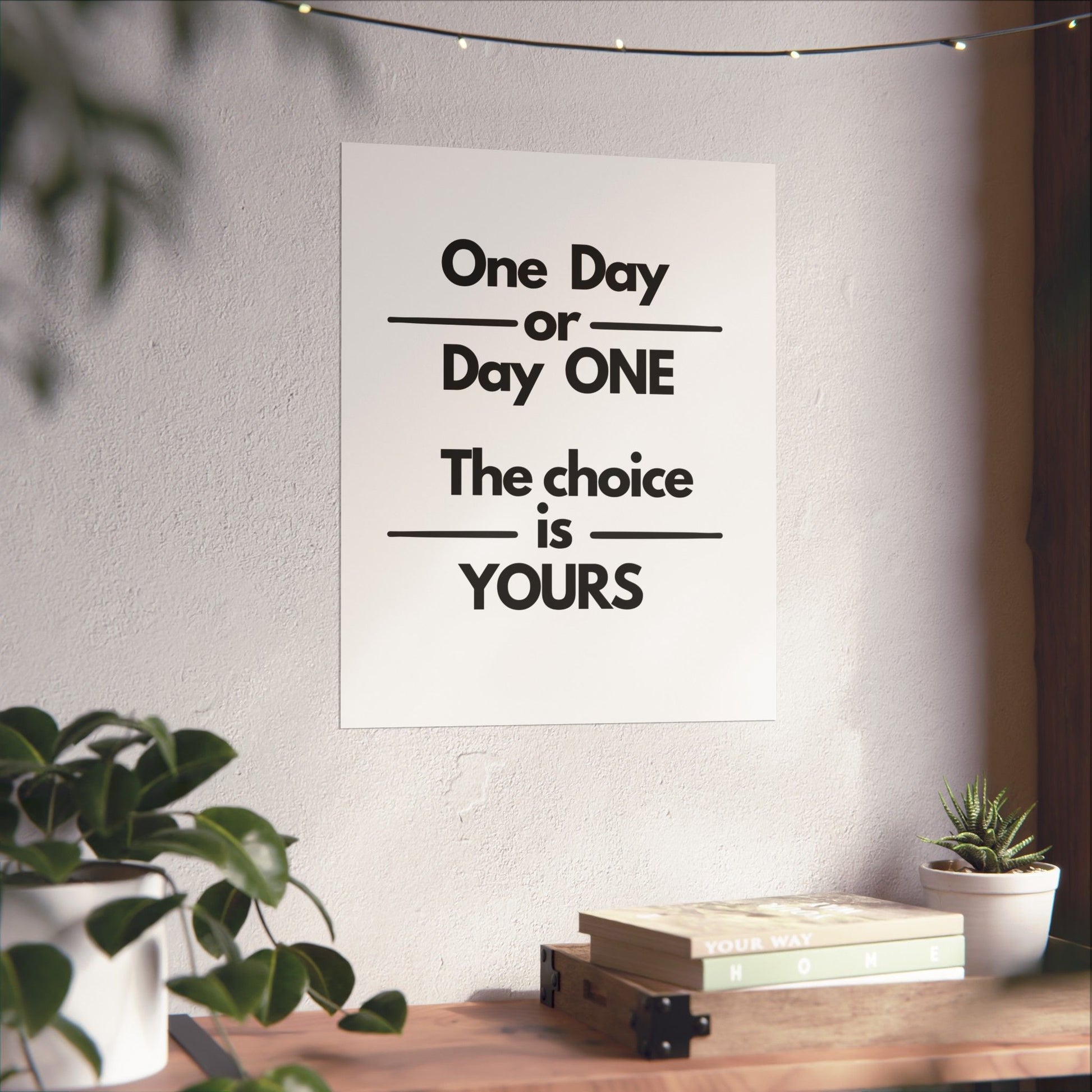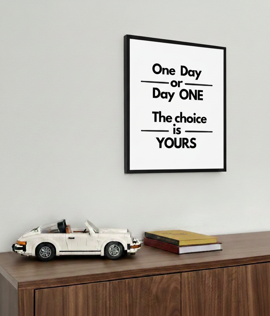 One Day or Day One" Motivational Poster – Bold White Edition